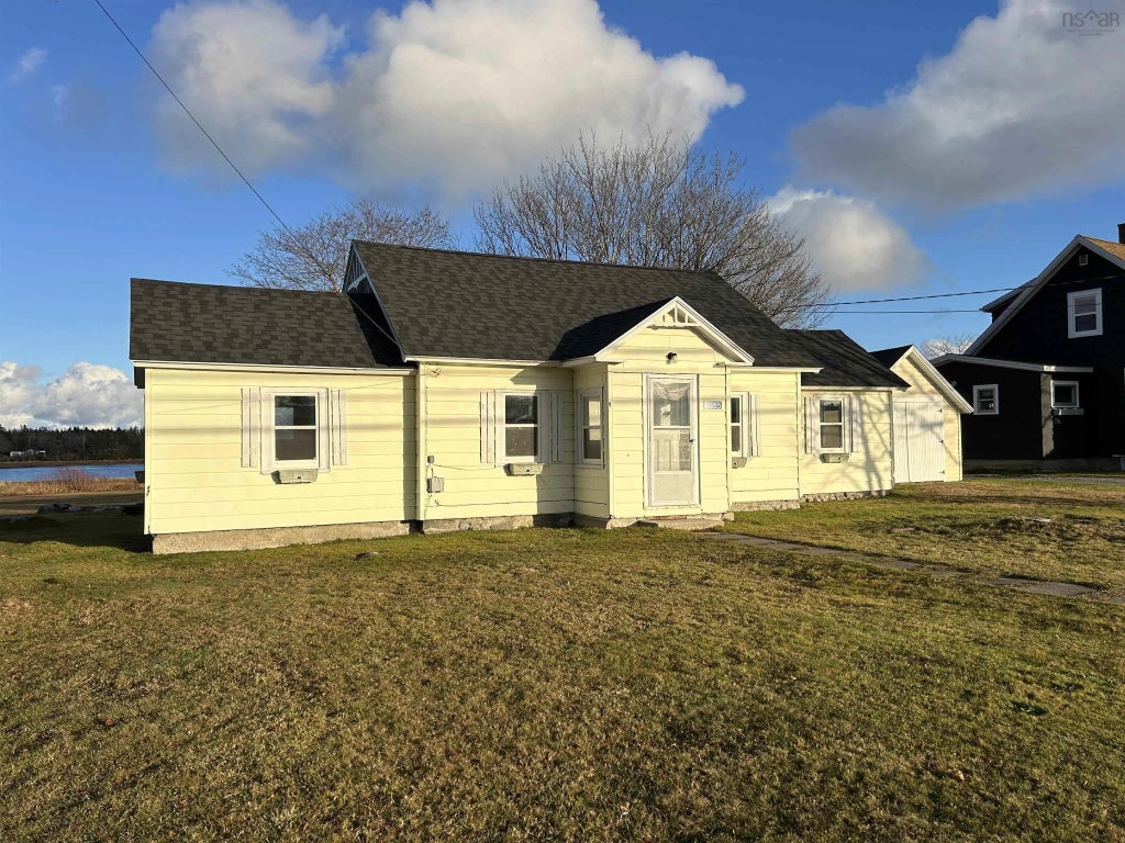 Reduced to sell ! Excellent location. Retirement dream ! Walking distance to Barrington Bay waterfront trail, a short drive to shopping, banking, restaurants, quick drive to Arena Complex with Curling Rink, swimming pool and community garden! Only a few minutes to a white sand beach ! Two bedrooms, spacious living room and 4 pc bath. Ideal for starter, retirement or rental property. Home requires interior renos, including wiring updates and interior cosmetics. Fridge, stove and dryer included in current condition. Electric baseboard heat. Property has been recently surveyed offering 63 ft. of waterfront, landscaped to the shore with beautiful views. 12 x 18 detached garage/workshop. Vinyl siding, some newer vinyl windows with roof of home and building re-shingled 2024. Excellent retirement home for the handy man and avid gardener ! Municipal sewer with dug well. Suitable for move in and improve as you go !