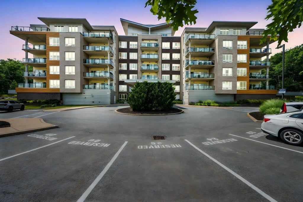 Welcome to easy living in this spacious 2-bedroom, 2-bath condo, perfectly situated in a quiet, well-run building that backs onto peaceful green space. Whether you're a first-time buyer or looking to downsize, this home is ideal for anyone who wants to skip the stress of home maintenance and just enjoy life. With hassle-free features like a heat pump for cooling, natural gas hot water baseboard heating, and your own parking and storage, everything is set up for comfort and convenience. Close the door and go—worry-free living starts here. Condo fee includes heat and water. Vacant and ready to move in. Parking and storage #46. Storage is 4'x10' On the 6th floor (top) there is a fitness centre and common room. Lockbox on bike rack to left of front door.